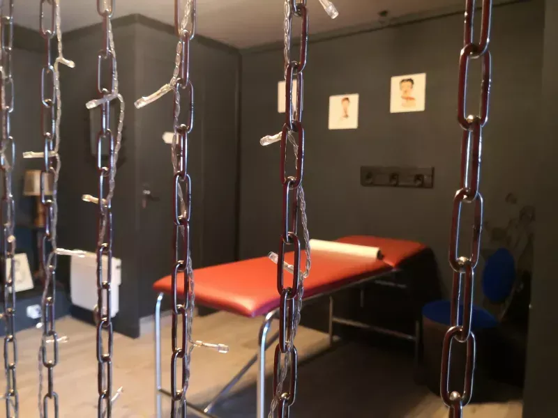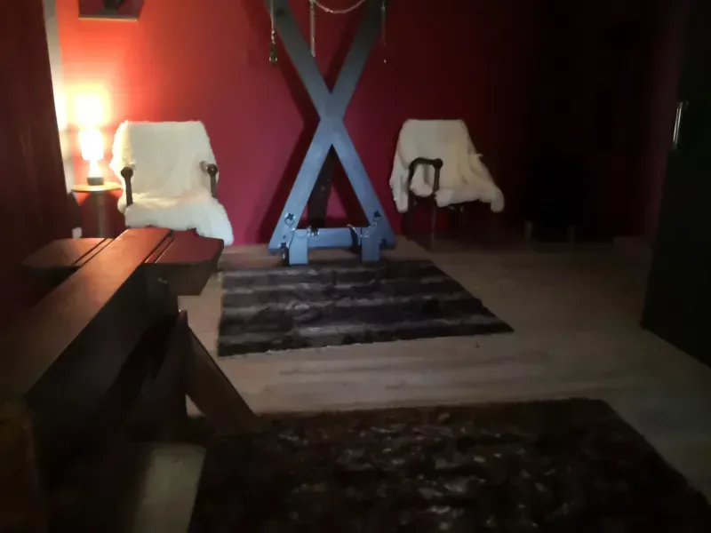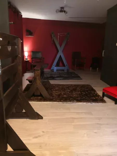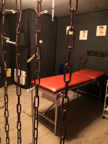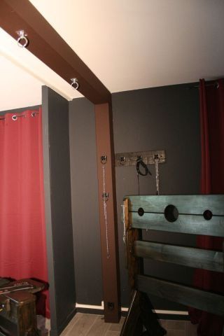 Quelques photos prises dans le donjon du Refuge Des Extases, un des deux gites de l'Antre Des Vices, vos gites BDSM proche de Valence en Rhône Alpes. Toutes photos ne sont pas forcément contractuelles, la décoration ainsi que l'aménagement peuvent évoluer au fil du temps.